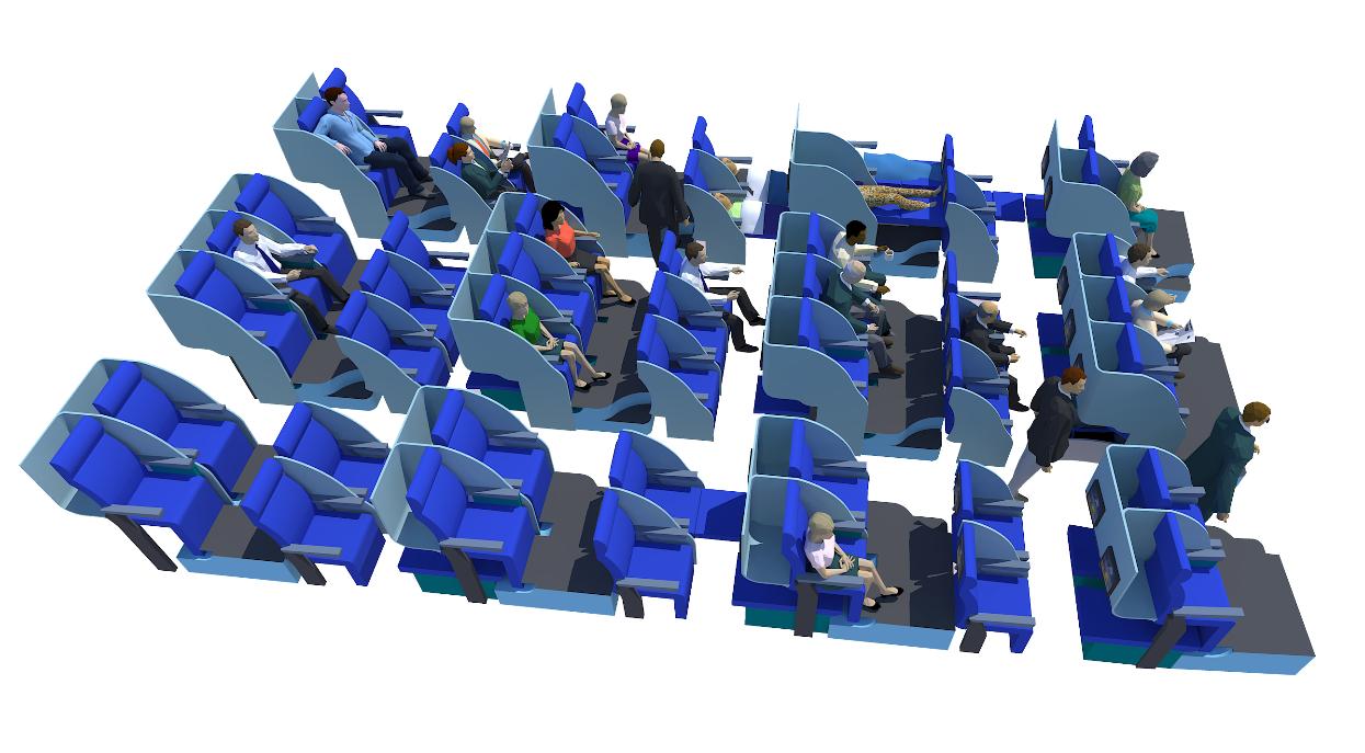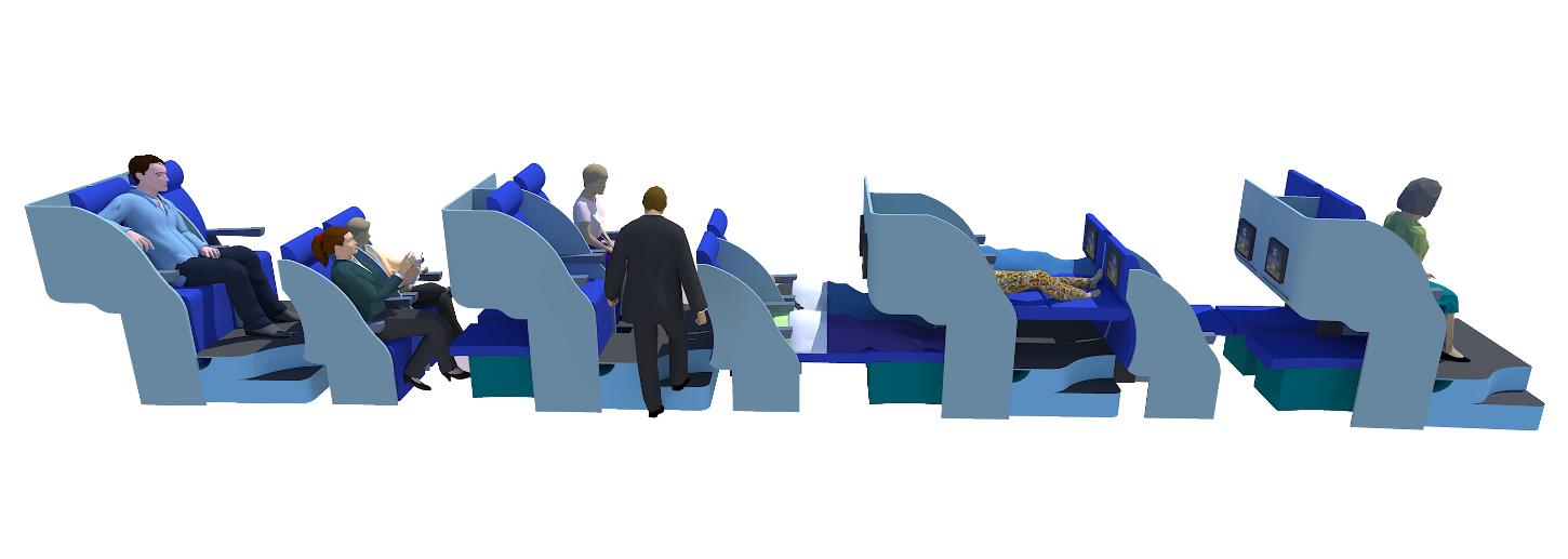 This model can increase conventional (fully reclining) Business Class passenger density by