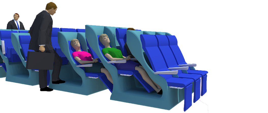 Cost Effective Reclining Accommodations for Airlines - Capturing vertical space in airline interiors through the use of steps