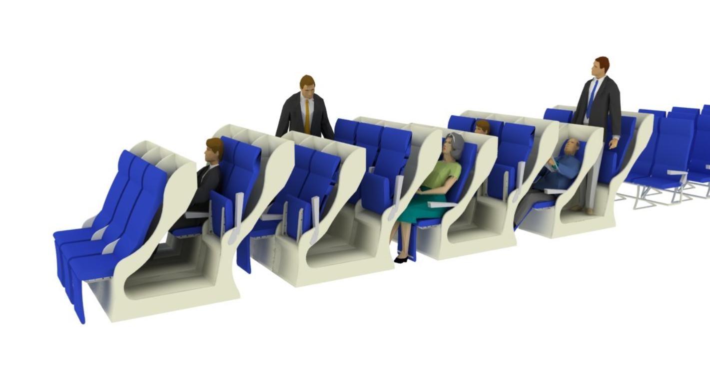- Leg room for the passenger sitting on the lower level available below the elevated seat - Reclining space for the elevated seat passenger is available over the feet area of reclined lower passenger This allows both upper and lower level passenger to recline approximately 45 degrees.