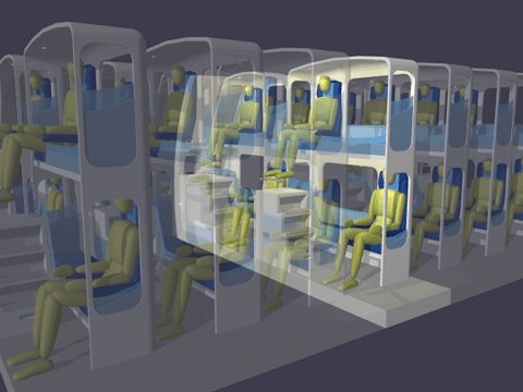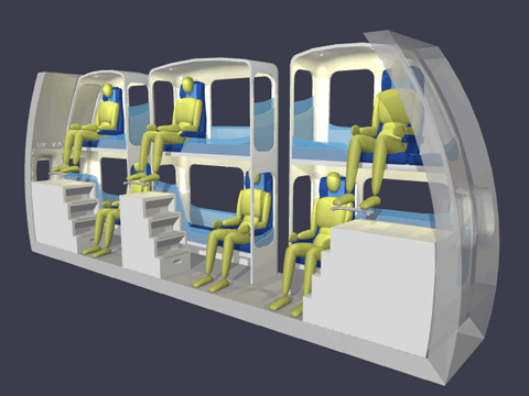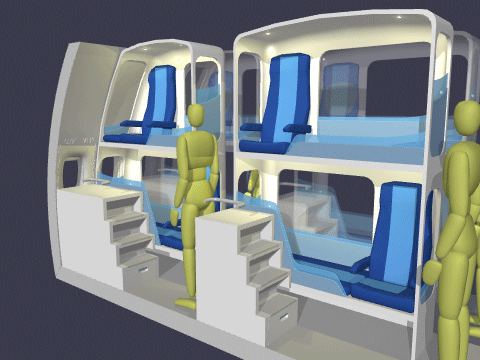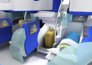 for sleeping accommodations on long distance flights is increasing. The above tabs show six patented models for capturing unused vertical space in