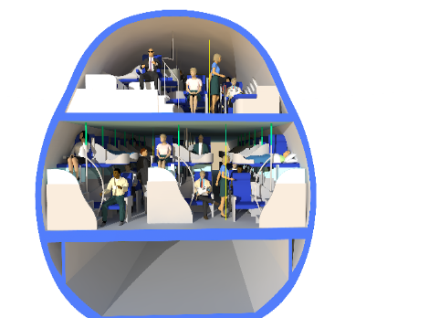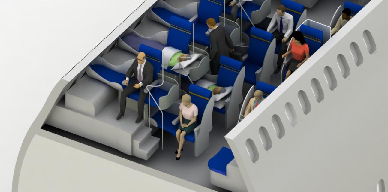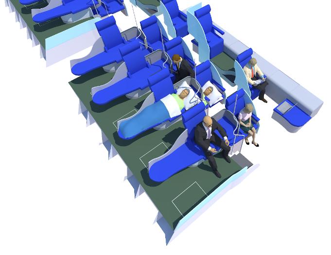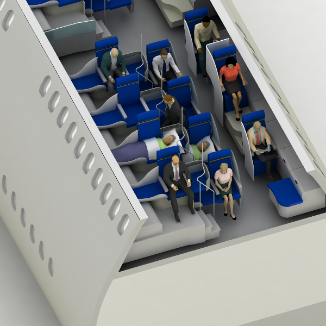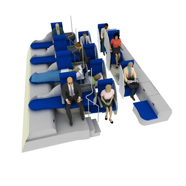 Second tier FLEX-SEAT placed laterally at shoulder height of the first tier passenger providing a solution for height limitations in