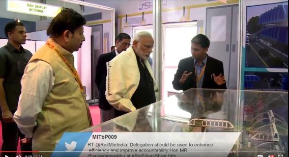 Dr. Ashwani Kumar presenting to Prime Minister (above) and minister of state for Railways